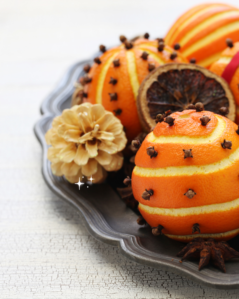 西洋に伝わる冬の風物詩です。柑橘系のフルーツにクローブを刺して、スパイスのパウダーをかけた「香りのお守り」です。クリスマスのオーナメントやプレゼントにしても素敵ですね。自然乾燥させて仕上げるため、空気が乾燥する今月から準備を始めましょう。
